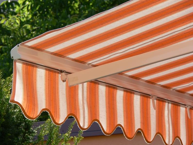 Pri použití PVC a textílie Soltis je maximálna šírka markízy obmedzená na 4 m a výsuv na 3 m.
